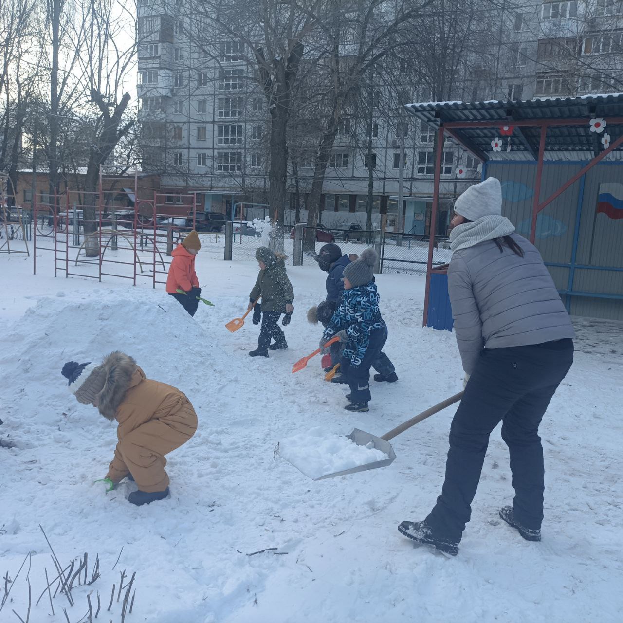 Снегу рада детвора: «Поваляемся с утра!» «Мне лопатку нужно дать Снег с дорожки убирать! Буду я трудиться, Работаю гордиться!»