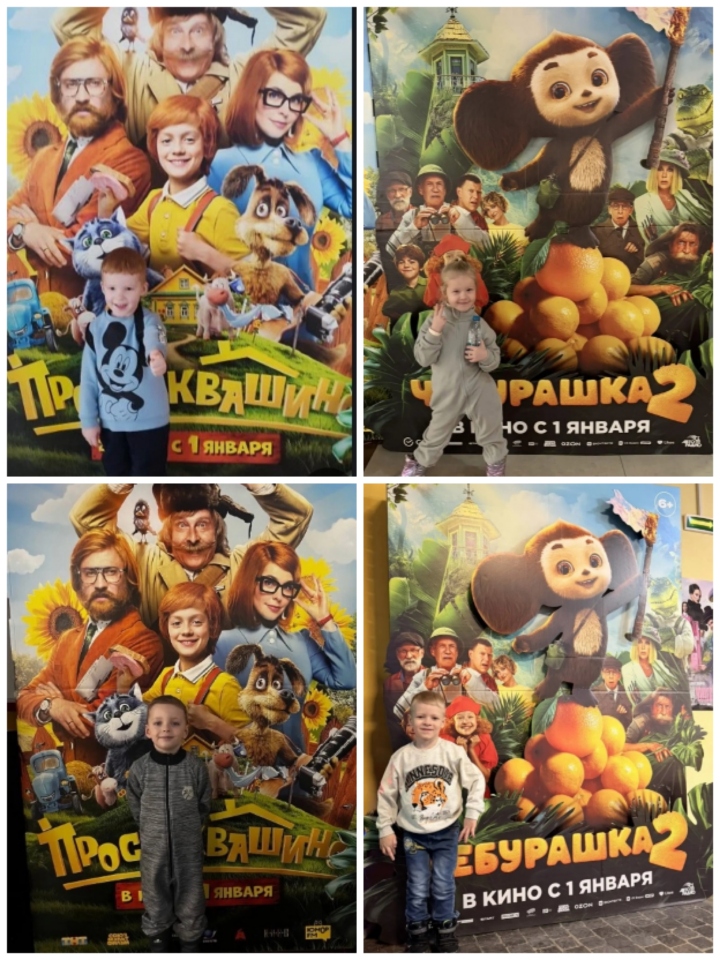 Ребята весело проводят новогодние выходные, отменили день детского кино походом в кинотеатр