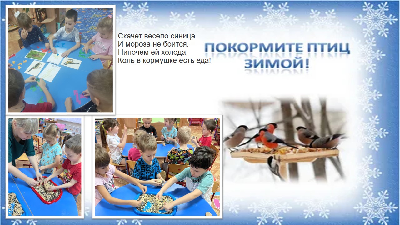 На тематической неделе «Зимующие птицы» поговорили о нелёгком времени для птиц., изготовили для них лакомство, которое разместим на участке детского сада, поиграли в головоломки «Собери птичку по схеме», придумали свои схемы птиц