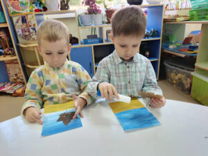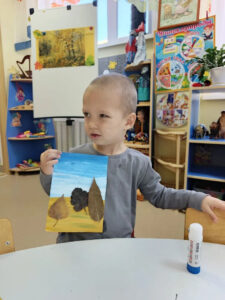 Золотая осень навеяла идею для творчества! Дети с увлечением принялись за работу с опавшими листьями, превратив их в настоящие деревья. Итогом стал волшебный осенний пейзаж.
