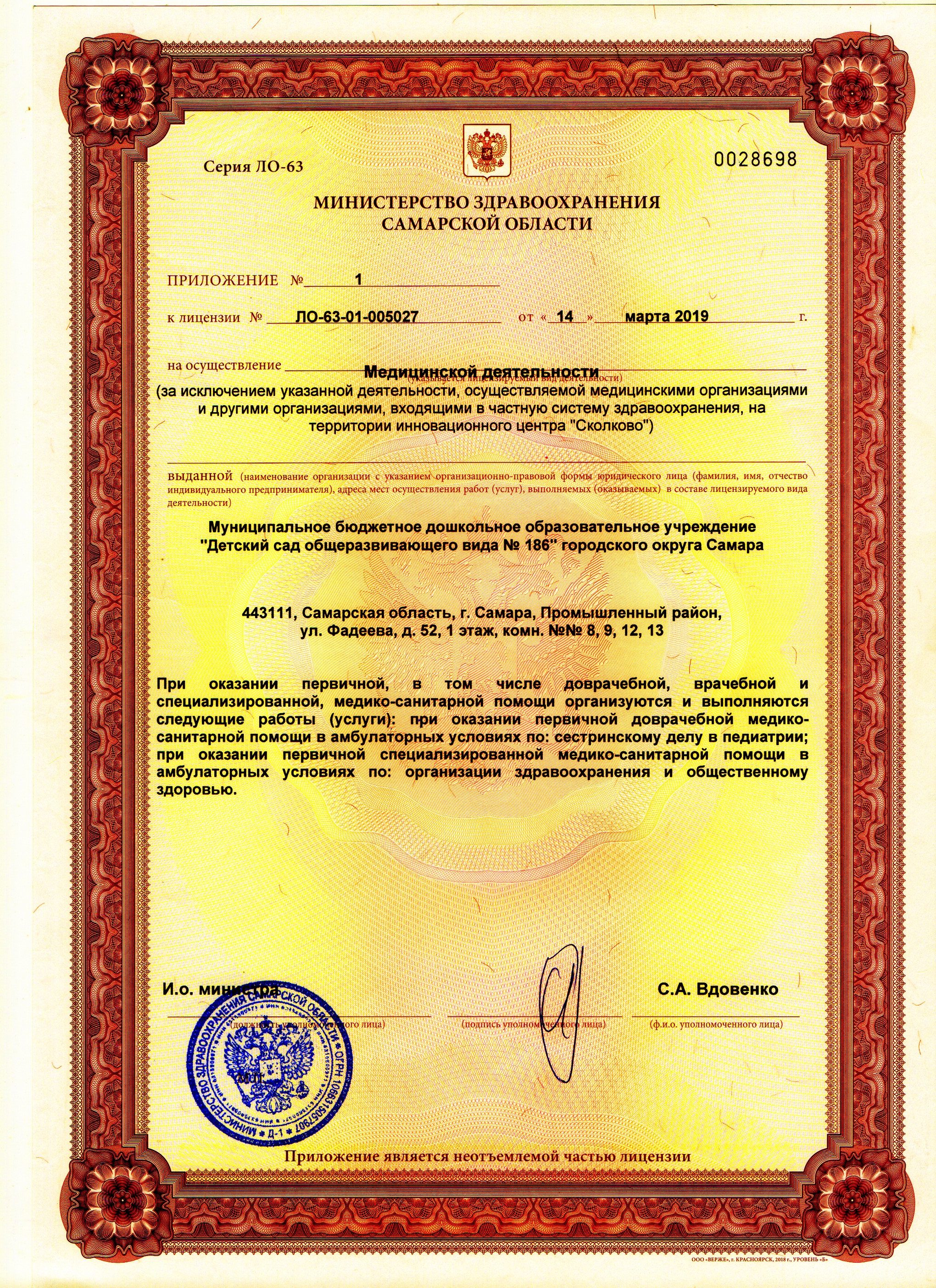 уведомление о внесении изменений МБДОУ «Детский сад № 186» г.о. Самара