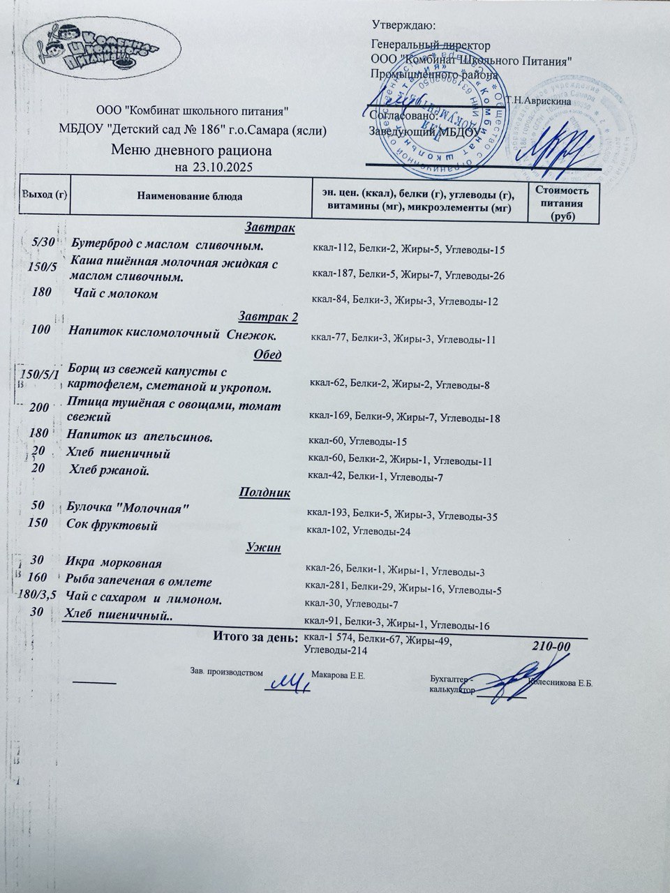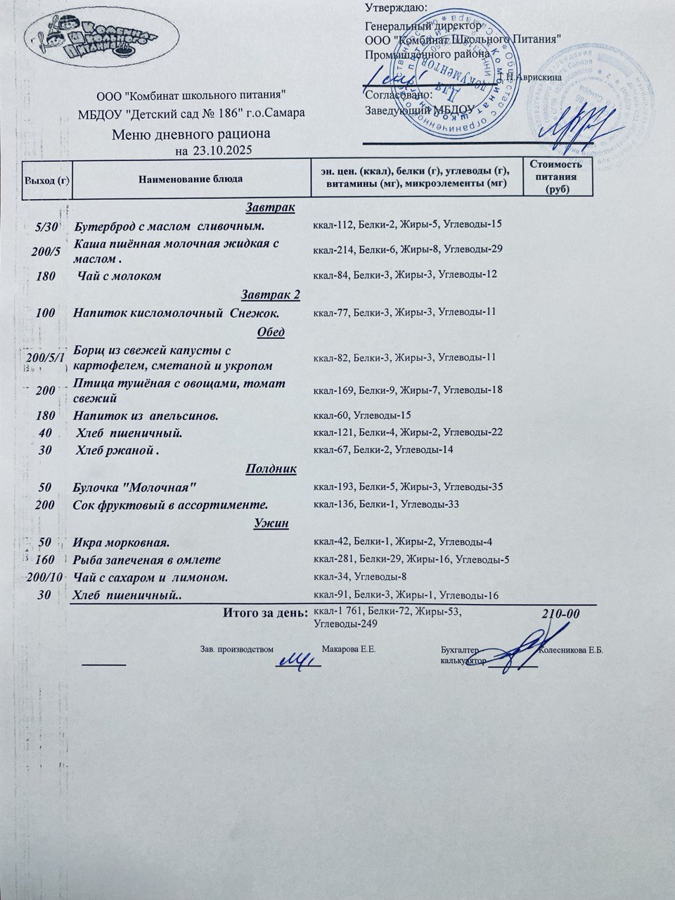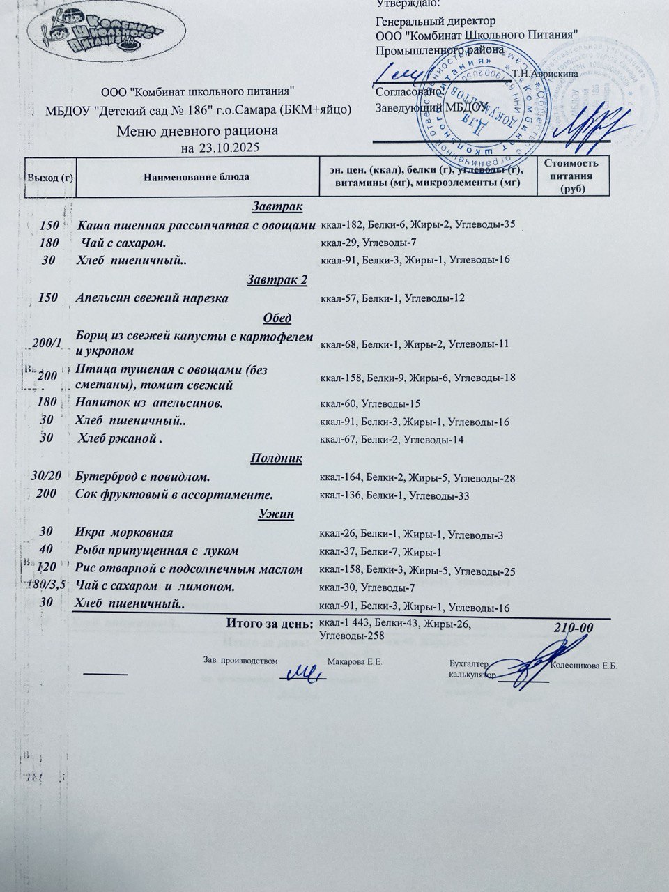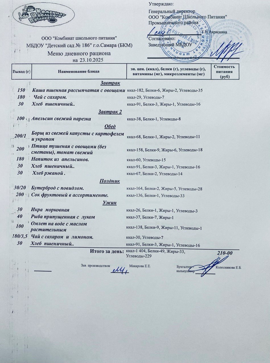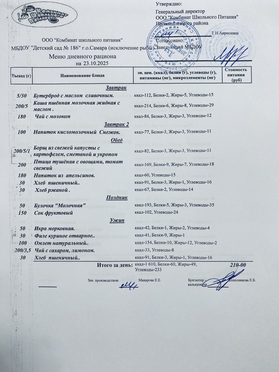 Ежедневное фактическое меню на 23 октября 2025 года, в том числе индивидуальное